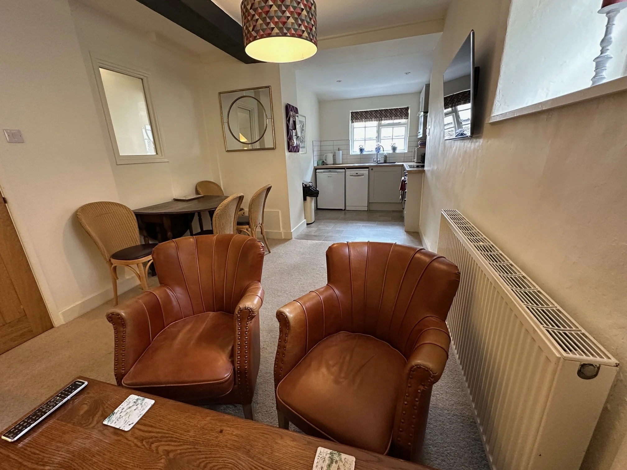 Cottage I has an open plan living, dining room, kitchen with a twin bedded room and double room with a kingsize bed. There is a family shower room